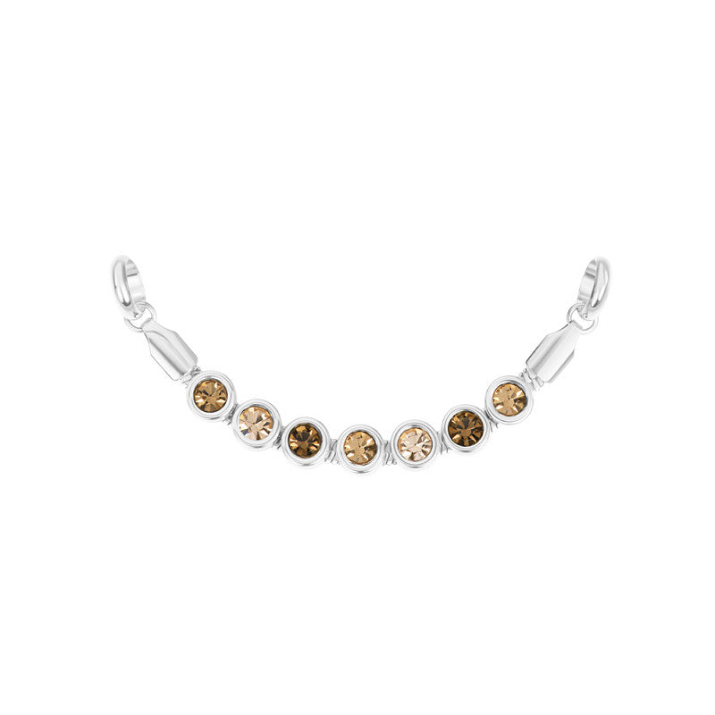 Op deze streng zijn ronde vormen bevestigd die zijn ingelegd met verschillende warme velvet-achtig gekleurde steentjes.