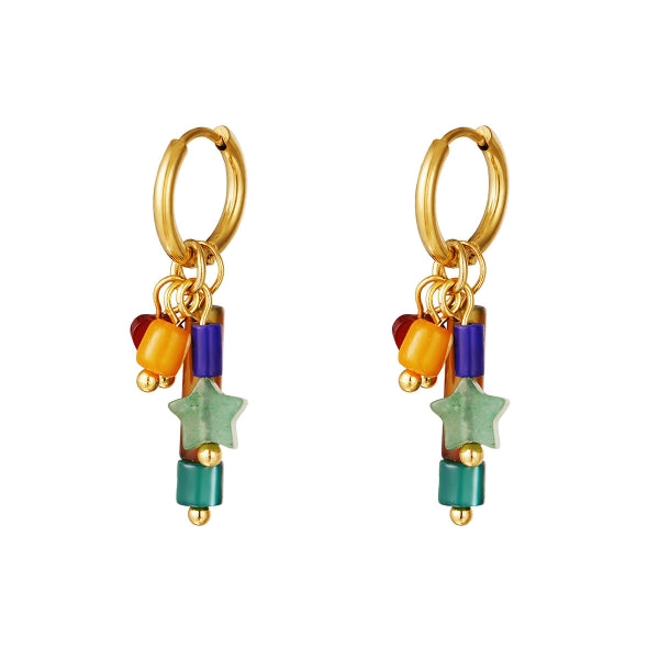Deze roestvrijstalen oorbellen zijn versierd met prachtige gekleurde bedels.