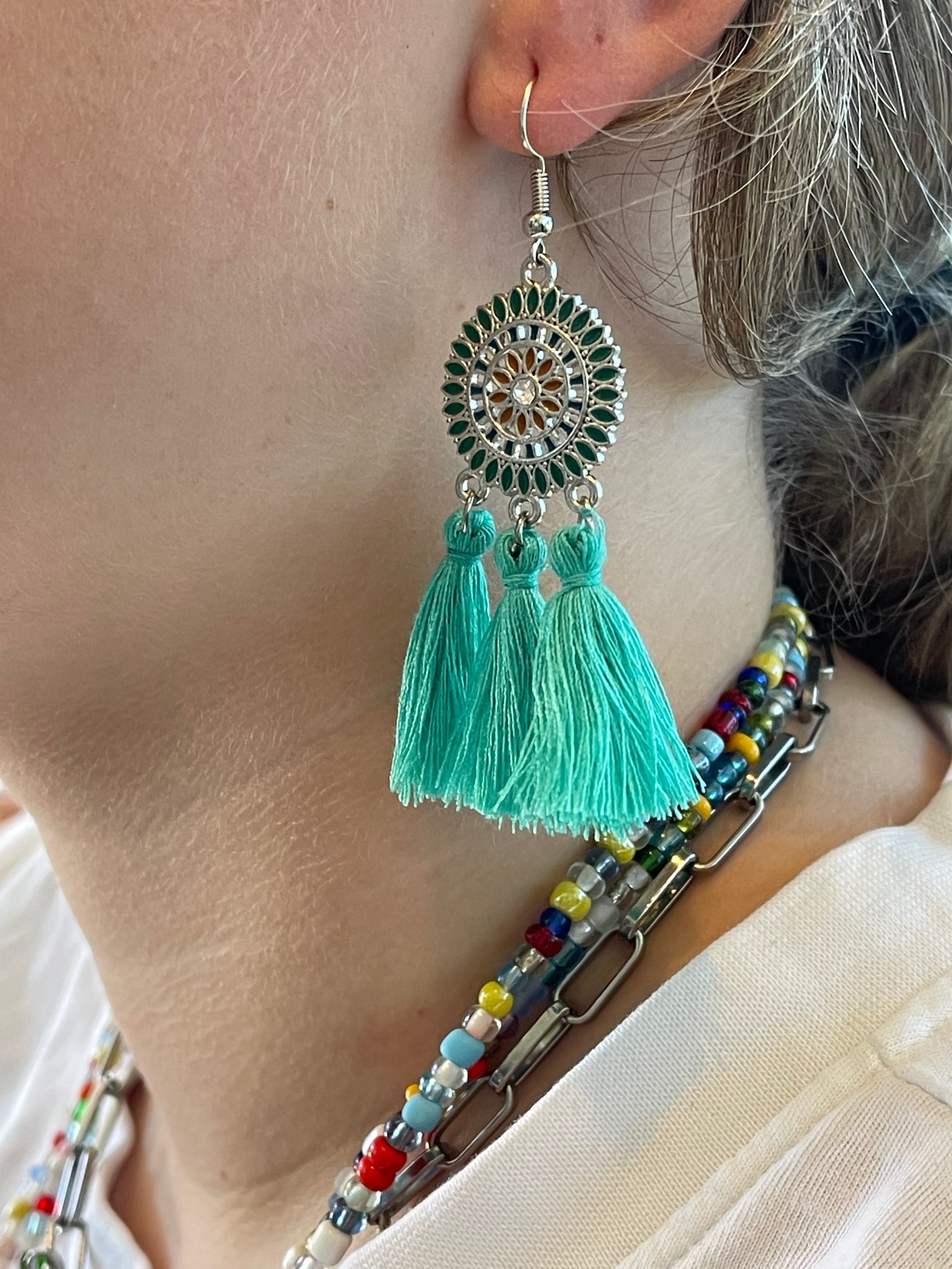 Ibiza oorbel Lin heeft 3 turquoise kwastjes
