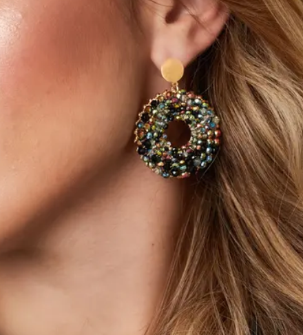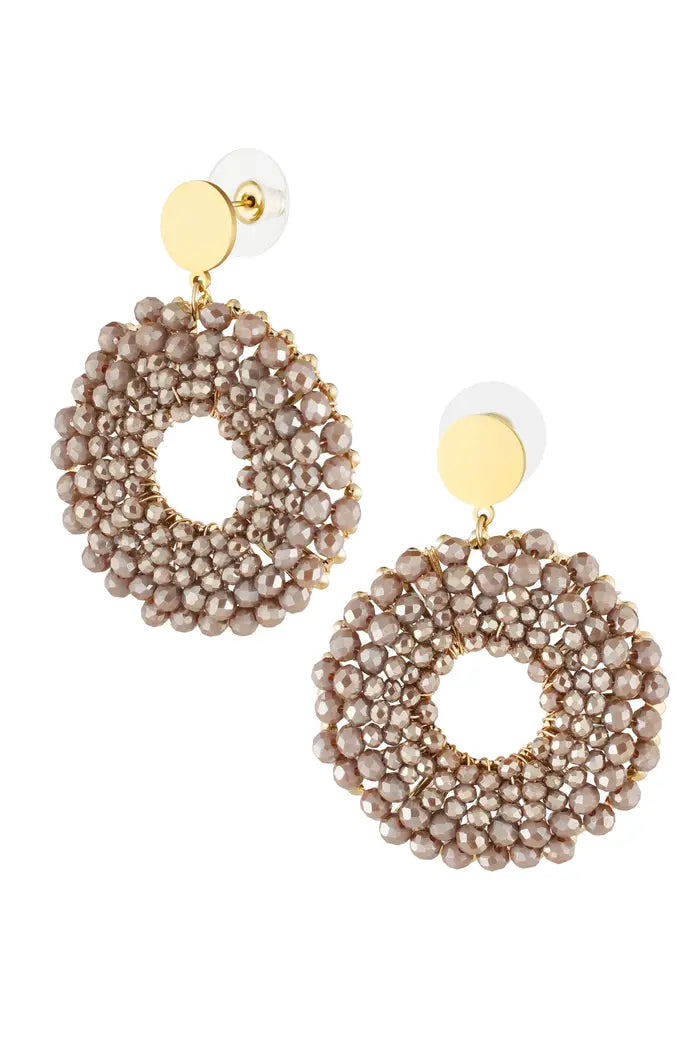 Hoe tof zijn deze statement beige kralen oorbellen in de vorm van een donut