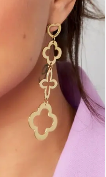 - Hoe leuk zijn deze gouden statement oorbellen met vier leuke bedels, waaronder een klaver en hart.