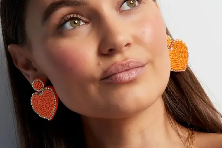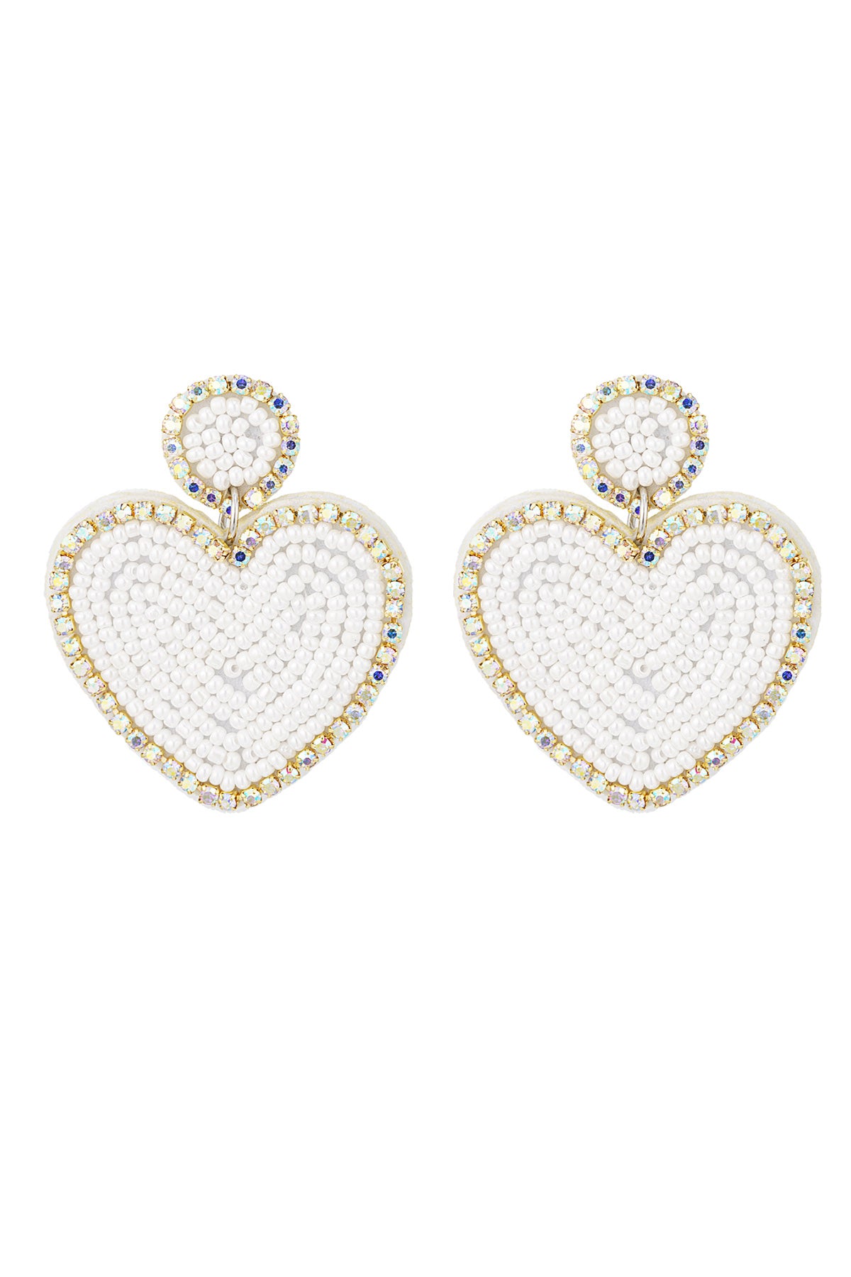 Hoe leuk zijn deze beige oorbellen in de vorm van een rondje en groter hartje, gemaakt van kralen.